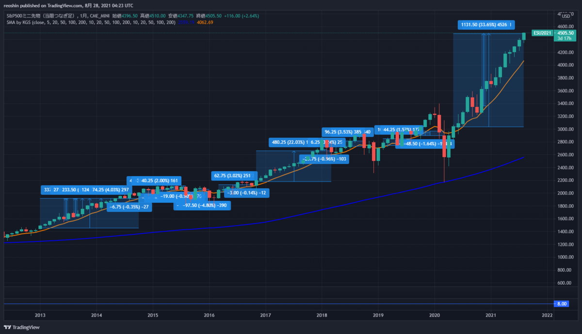 ◆ES1!(S&P500先物)検証期間:2012/12-2021/8/26